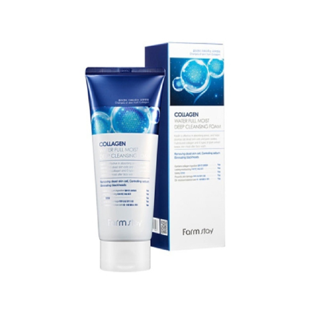 Το Collagen Water Full Moist Deep Cleansing Foam της Farmstay είναι ένα προϊόν καθαρισμού προσώπου που συνδυάζει τον καθαρισμό με την ενυδάτωση και την αναζωογόνηση του δέρματος.Το προϊόν αφήνει το δέρμα ανανεωμένο και φρέσκο, προσφέροντας μια αίσθηση καθαριότητας και φρεσκάδας.Ανήκει στη σειρά προϊόντων της Farmstay που περιέχουν κολλαγόνο, το οποίο έχει ευεργετικά αποτελέσματα στην επιδερμίδα, παρέχοντας την απαραίτητη υγρασία και αναζωογόνηση.Ιδανικό για καθημερινή χρήση, χαρίζει αίσθηση απαλότητας και φρεσκάδας, χωρίς να διαταράσσει τον φυσικό επιδερμικό φραγμό.