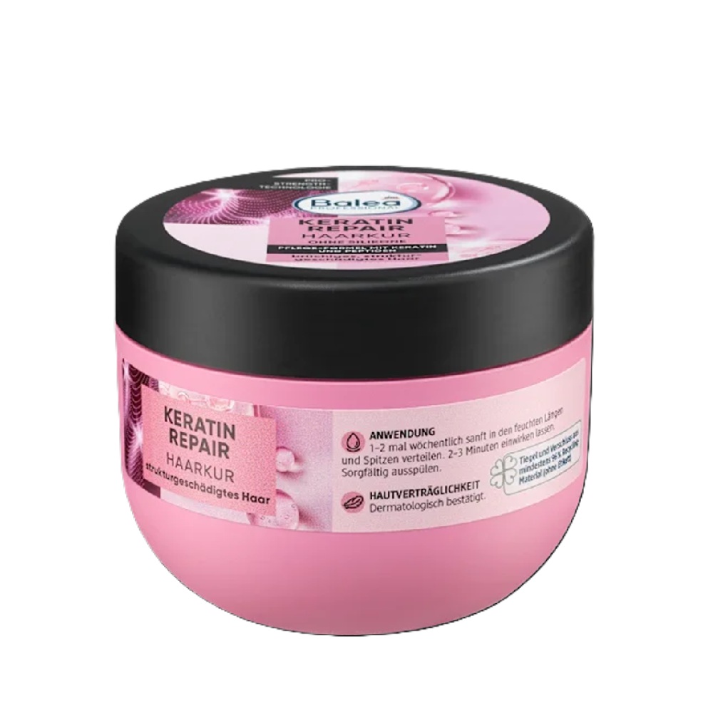 Η θεραπεία μαλλιών Balea Professional Keratin Repair είναι ειδικά σχεδιασμένη για εύθραυστα και ταλαιπωρημένα μαλλιά. Εμπλουτισμένη με κερατίνη και πεπτίδια, η φόρμουλα αποκαθιστά τη δύναμη στα μαλλιά, αφήνοντάς τα να φαίνονται υγιή.