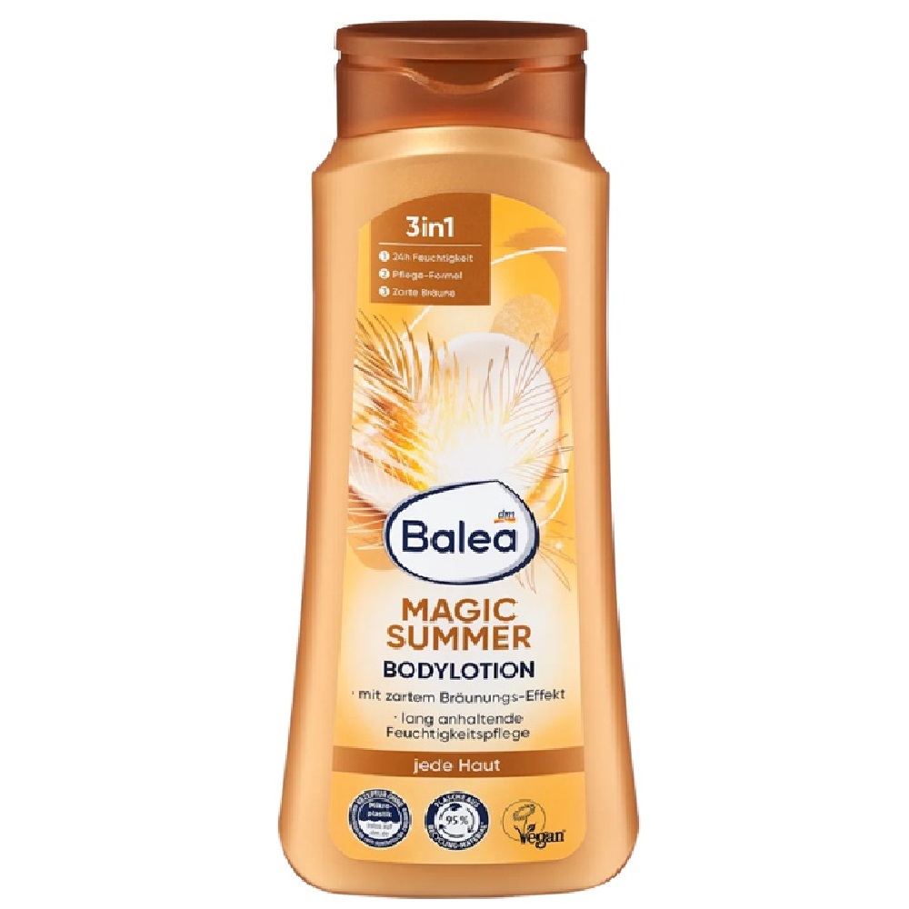 Η λοσιόν σώματος Balea Magic Summer με απαλό μαύρισμα παρέχει μακράς διαρκείας ενυδάτωση και είναι κατάλληλη για όλους τους τύπους δέρματος, με το καλοκαιρινό, φρέσκο ​​άρωμά της και το θρεπτικό λάδι καρύδας, χαρίζει στην επιδερμίδα ένα φυσικό μαύρισμα