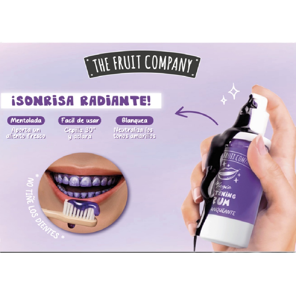 Ο ορός λεύκανσης δοντιών της The Fruit Company είναι ειδικά σχεδιασμένος για να βοηθά στην εξάλειψη των κίτρινων τόνων από τα δόντια, επιτυγχάνοντας μια πιο λευκή εμφάνιση χωρίς να καταστρέφει το σμάλτο. Με ένα αναζωογονητικό άρωμα μέντας, όχι μόνο λευκαίνει τα δόντια σταδιακά, αλλά παρέχει και μια άμεση αίσθηση φρεσκάδας, αφήνοντας την αναπνοή ευχάριστη μετά από κάθε χρήση.
