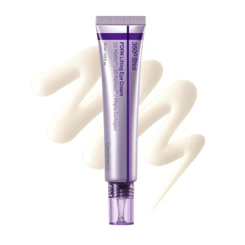 Η Centellian24 360 Shot PDRN Lifting Eye Cream είναι μια προηγμένη αντιγηραντική κρέμα ματιών σύσφιξης και lifting σχεδιασμένη για να φροντίζει ολόκληρη την περιοχή των ματιών,συμπεριλαμβανομένων των λεπτών γραμμών, των μαύρων κύκλων, των σακουλών και των ρυτίδων «πόδι χήνας».Η σύνθεσή της συνδυάζει PDRN,TECA από Centella Asiatica και ρετινοειδή,συμβάλλοντας στη σύσφιξη,στη λείανση των ρυτίδων και στη βελτίωση της ελαστικότητας της επιδερμίδας,χαρίζοντας πιο σφριγηλή και ξεκούραστη όψη.