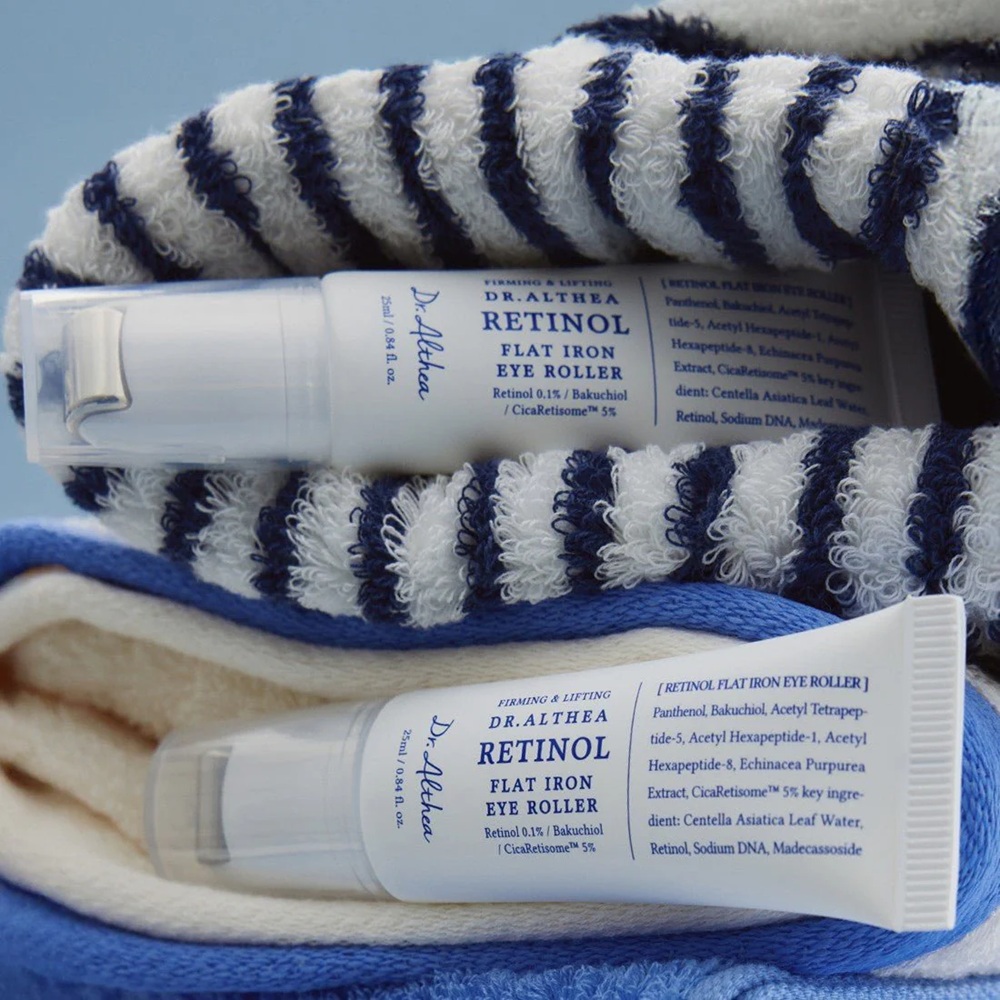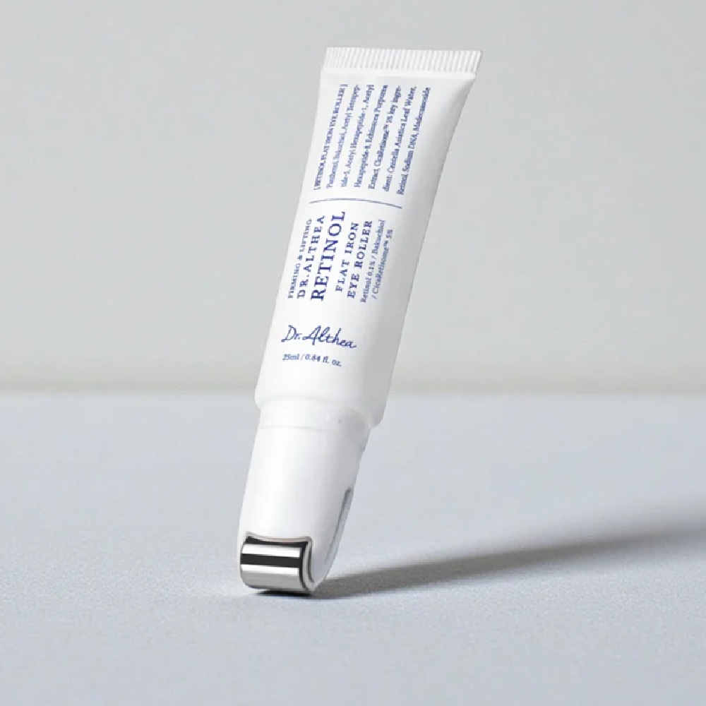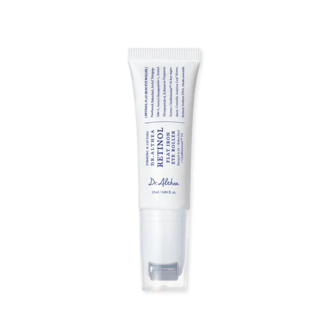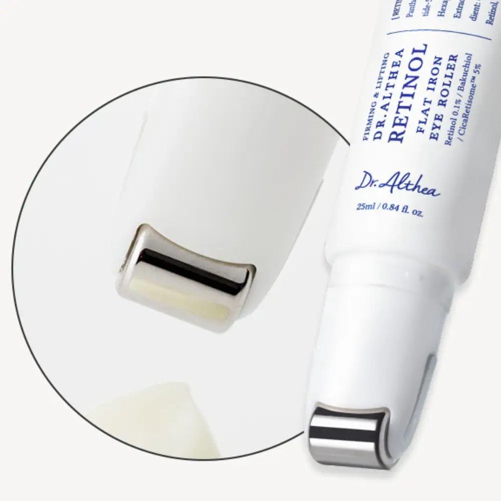 Το Retinol Flat Iron Eye Roller είναι ένα στοχευμένο serum ματιών με ενσωματωμένο roller μασάζ σχεδιασμένο για να βελτιώνει την εμφάνιση των λεπτών γραμμών, της χαλάρωσης και των σημαδιών κόπωσης στην ευαίσθητη περιοχή των ματιών.Η καινοτόμος μεταλλική κεφαλή εμπνευσμένη από flat iron gua sha γλιστρά απαλά στην επιδερμίδα προσφέροντας δροσιστικό αποτέλεσμα και παράλληλα ενισχύει την απορρόφηση του προϊόντος χωρίς να τραβά το δέρμα.Η σύνθεση του περιλαμβάνει 1.000 ppm ρετινόλης και bakuchiol, ένα ισχυρό συνδιασμό που βοηθά στη μείωση των λεπτών γραμμών και στη βελτίωση της ελαστικότητας της επιδερμίδας. Παράλληλα,το υαλουρονικό οξύ προσφέρει βαθιά και παρατεταμένη ενυδάτωση,χαρίζοντας πιο λεία και γεμάτη όψη.Τέλος το 5% Cica Retisome™ (Centella Asiatica & Madecassoside) συμβάλλει στην καταπράυνση της επιδερμίδας και στην ενίσχυση του δερματικού φραγμού, καθιστώντας το κατάλληλο ακόμη και για ευαίσθητες επιδερμίδες.