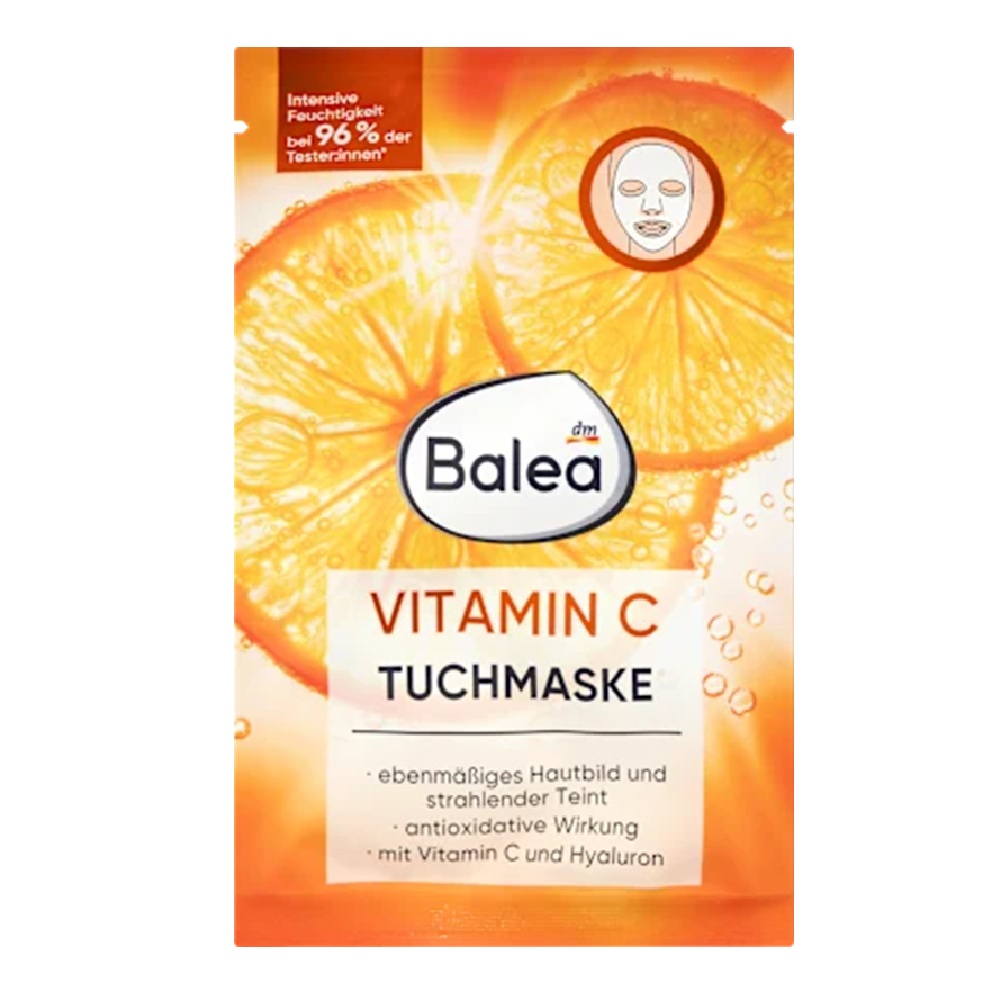 Ο συνδυασμός των ενεργών συστατικών στην έντονα ενυδατική μάσκα φύλλου Balea Vitamin C, με μια επιπλέον δόση βιταμίνης C και υαλουρονικού οξέος, αφήνει την επιδερμίδα βελούδινα απαλή. Η επιδερμίδα φαίνεται αναζωογονημένη και ομοιόμορφη, ενώ η κουρασμένη, θαμπή επιδερμίδα ανακτά τη σφριγηλότητά της. Η σύνθεση βοηθά στη μείωση της εμφάνισης λεπτών γραμμών και ρυτίδων.