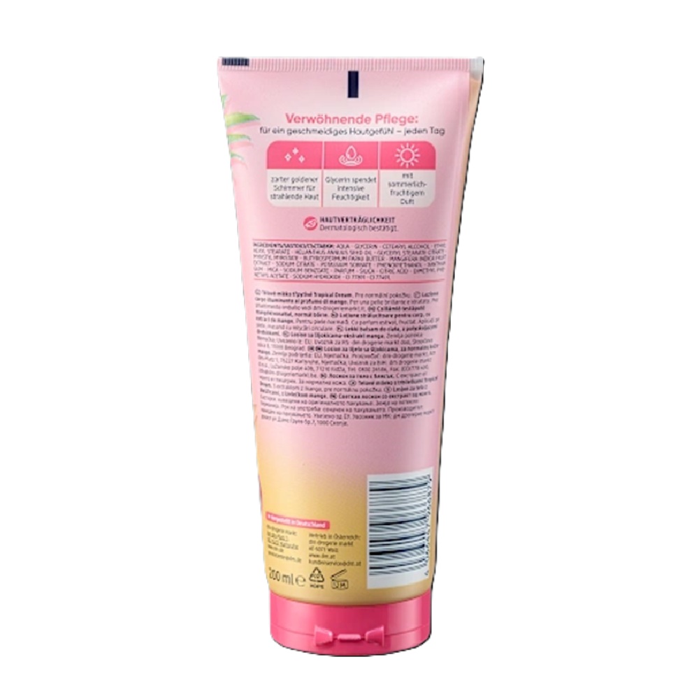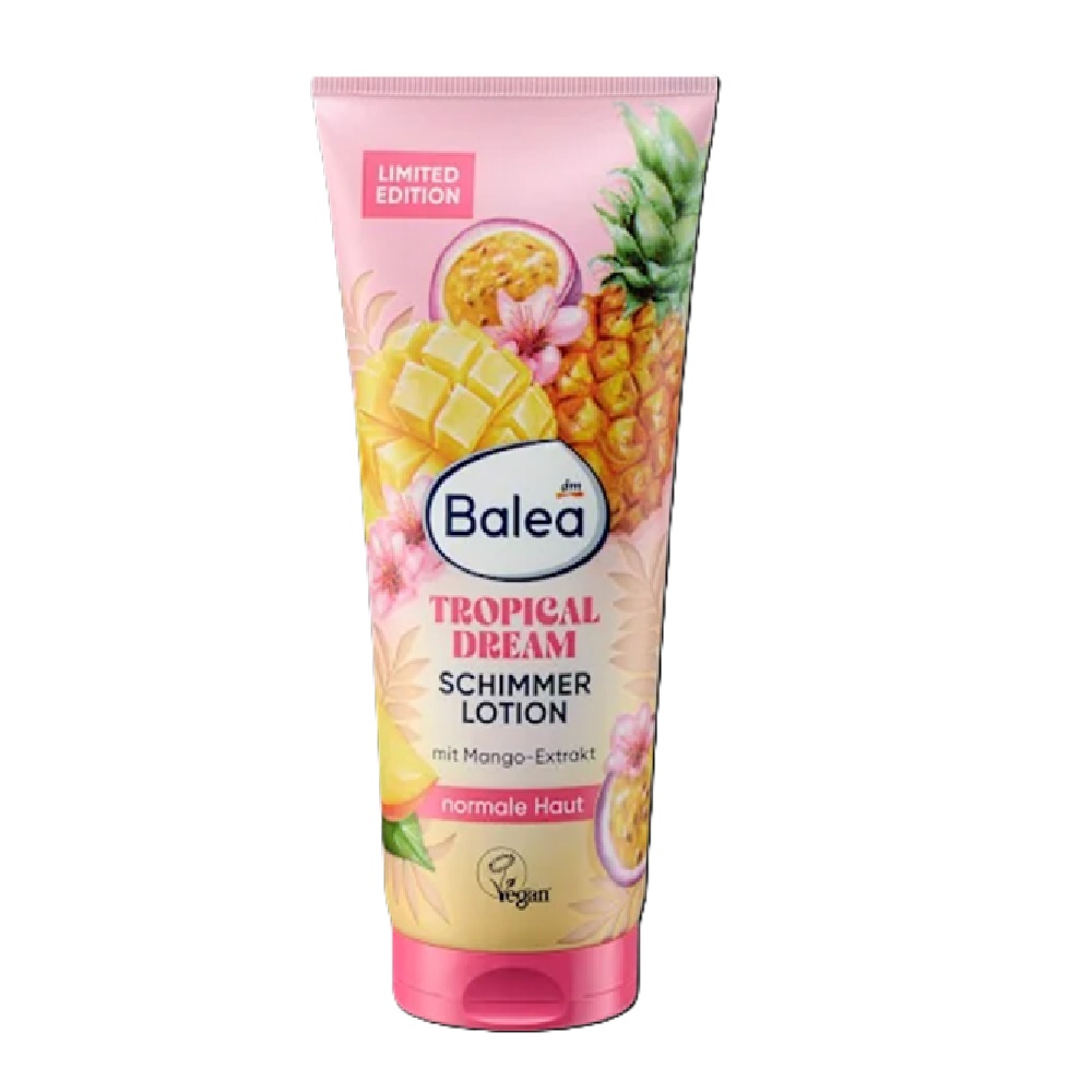 Η λαμπερή λοσιόν σώματος Tropical Dream της Balea θρέφει την επιδερμίδα και της χαρίζει μια λαμπερή λάμψη. Η περιποιητική της σύνθεση